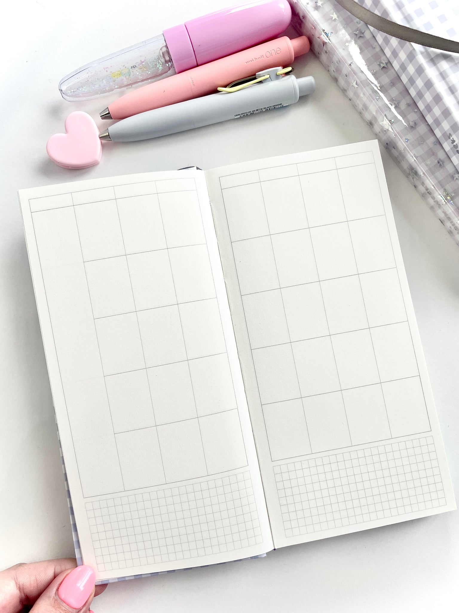 Start planning, tracking and being creative at any time with our undated weeks planner, featuring 12 monthly layouts, 54 weekly layouts and 75 grid note pages.